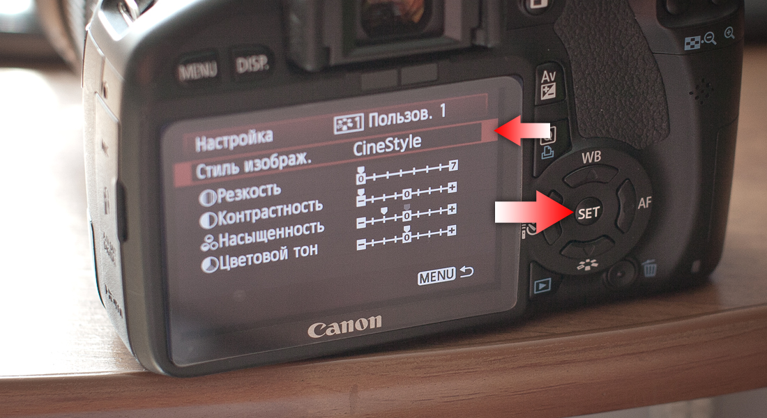 Готово! Technicolor CineStyle «прописался» в Вашу камеру. По такому же принципу можно установить в ячейку 2 стиль Marvels Cine. ВАЖНО! Для придания картинки «киношности» настройках профиля фотоаппарата необходимо отключить резкость, контрастность и установить на половину насыщенность изображения. Наиболее важно отключить резкость, т.к. встроенный метод предназначен для фото; на видео данная «улучшалка» будет выглядеть очень «пластиковой», как будто применён эффект emboss. Материал становится практически не пригодным к работе. Пожалуйста, не игнорируйте эту настройку! Можно снимать без CineStyle, но отключить резкость – очень важно! |